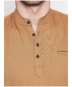 Crafted with meticulous attention to detail, our men’s brown cotton casual short cross kurta shirt boasts a design that seamlessly blends traditional and contemporary styles. The high-quality cotton fabric ensures breathability and durability, making this kurta shirt an ideal choice for elevating your everyday style with a hint of cultural flair.