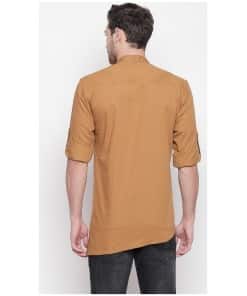 Brown Men’s Cotton Casual Short Cross Kurta Shirt – a distinctive and stylish addition to your wardrobe, meticulously designed for the modern man who values both comfort and contemporary fashion. This kurta shirt is not just casual wear; it’s a statement of modern design, featuring a rich brown hue, crafted from breathable cotton for optimal comfort, and designed with a short cross style that effortlessly blends traditional and trendy elements.