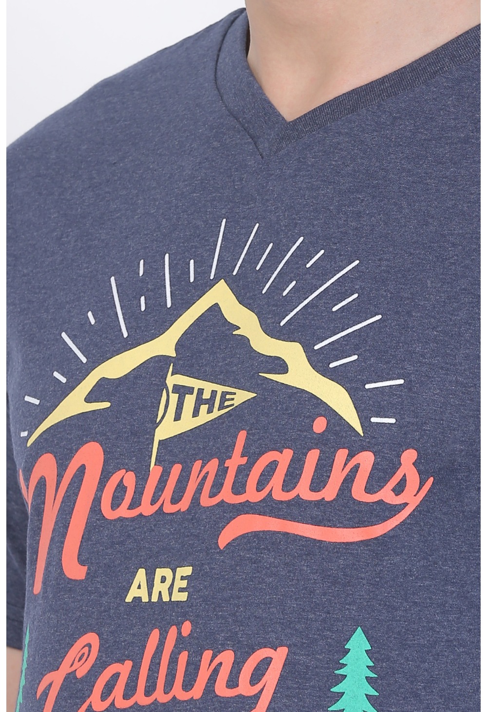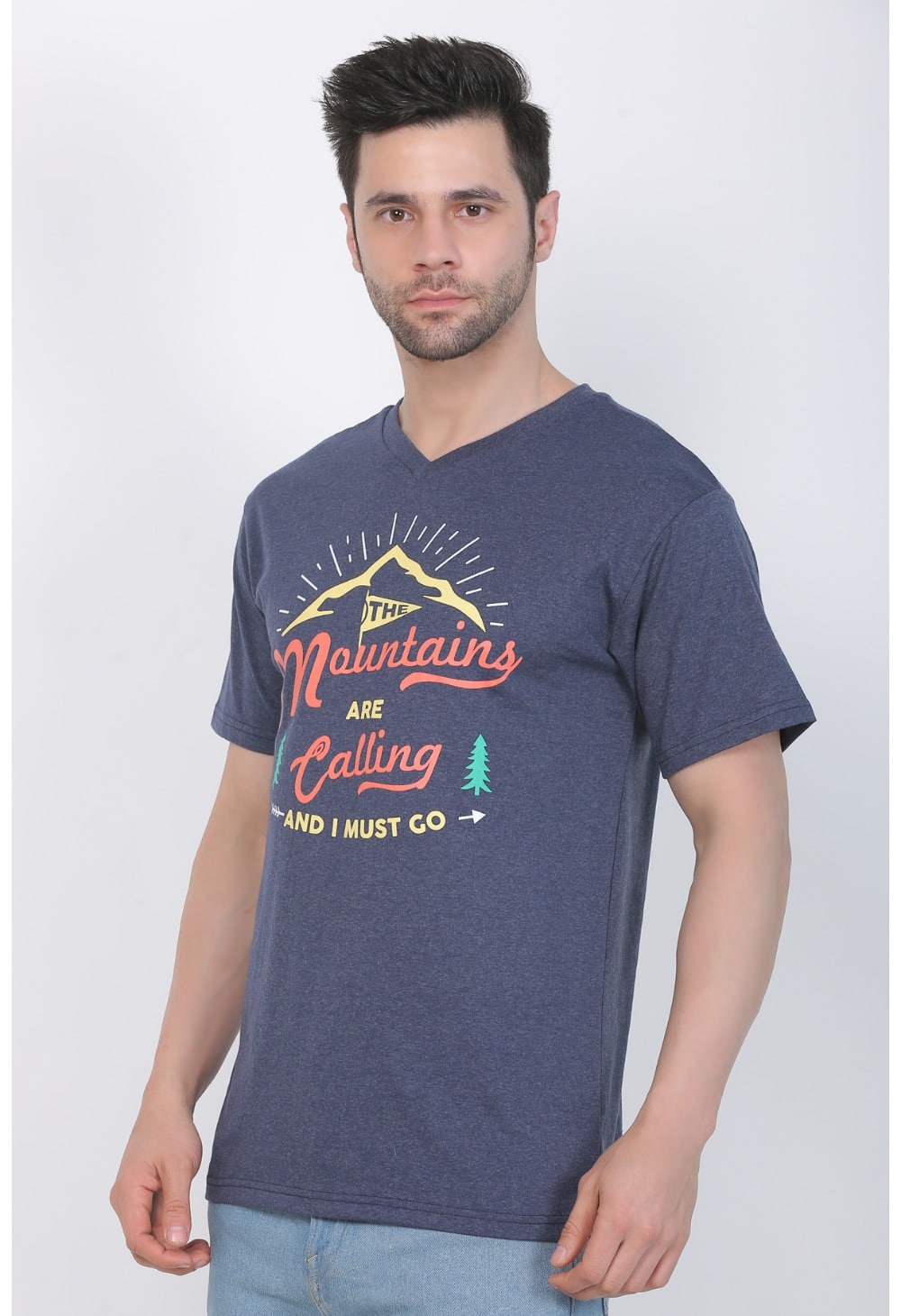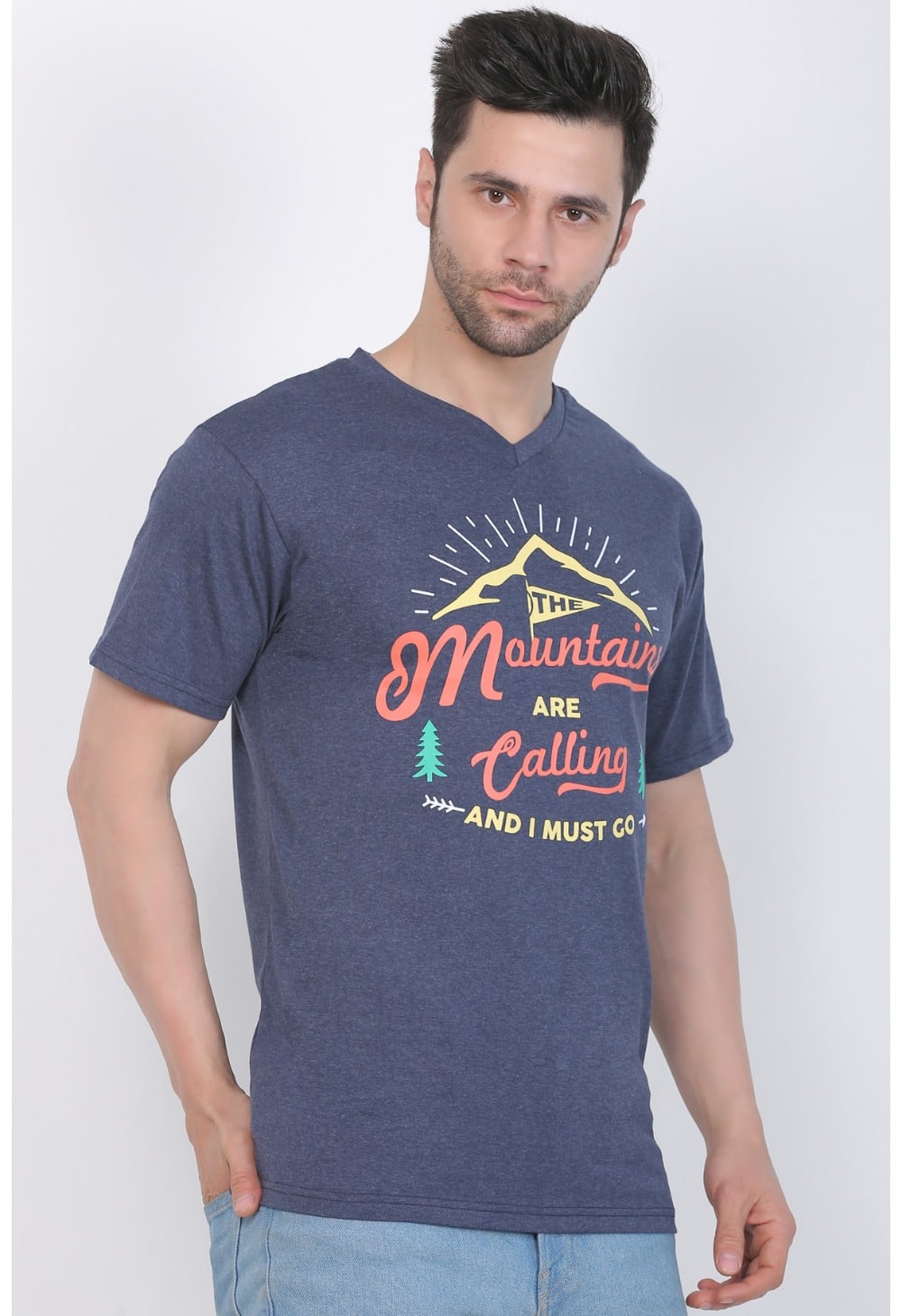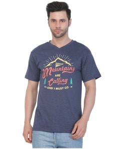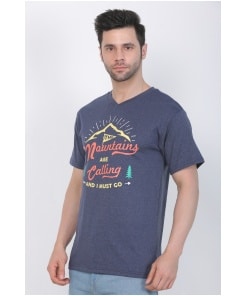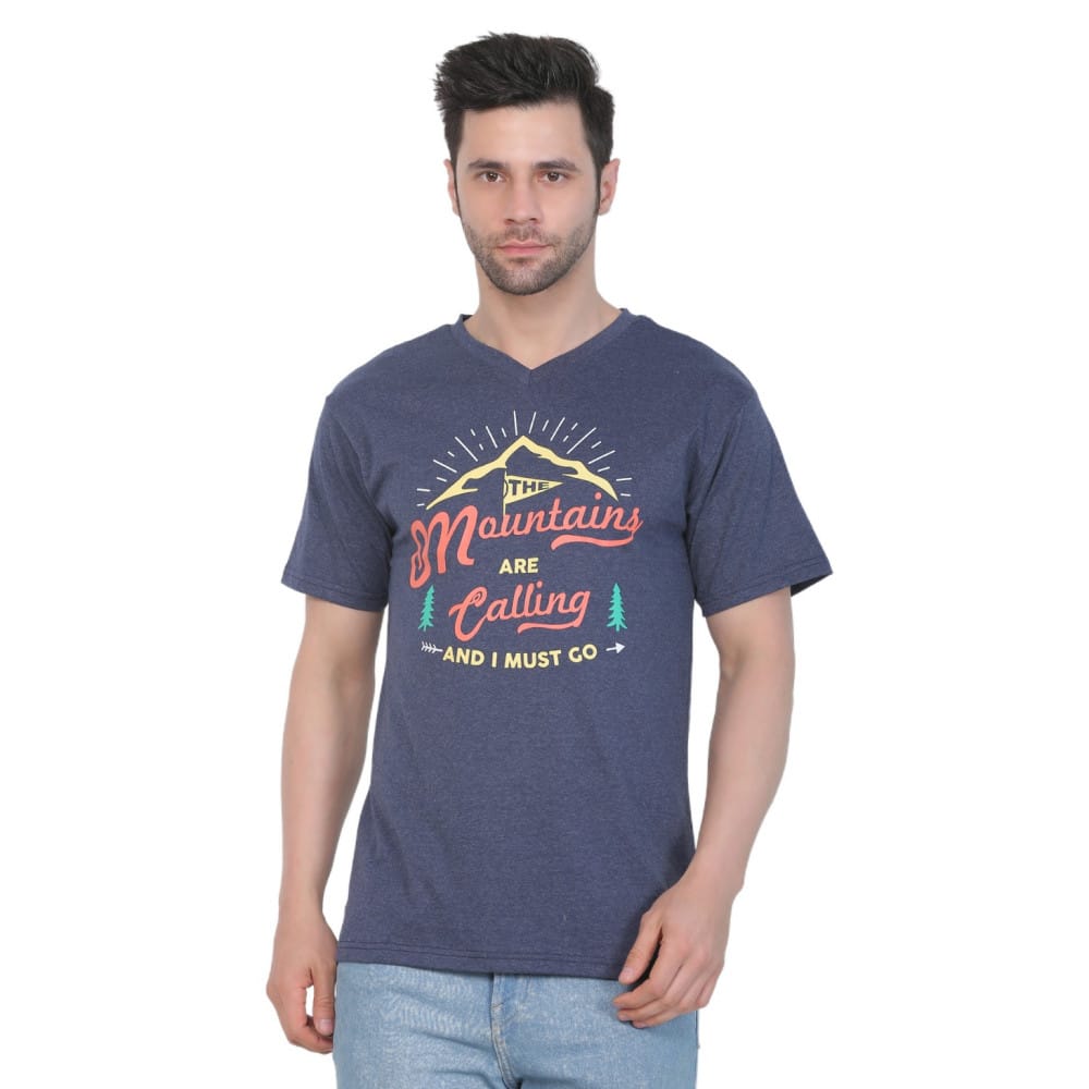 Blue Melange Cotton Jersey V-Neck Printed Men’s T-shirt – a perfect blend of comfort and contemporary style that adds a touch of individuality to your wardrobe. Elevate your casual look with this unique piece designed for the modern man.
