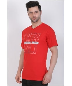 Express yourself with the Casual Red V-Neck Printed T-shirt in Soft Cotton Jersey for Men – because style is not just about what you wear, but how you wear it. Make every day a canvas for self-expression with this comfortable and fashion-forward T-shirt.