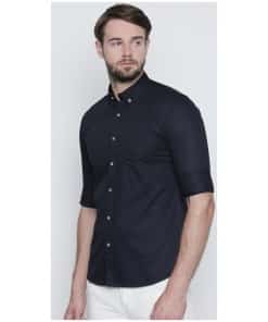 The timeless navy blue hue exudes understated elegance, making this shirt a versatile choice for a myriad of occasions. Whether you’re stepping into the office, enjoying a night out, or attending a casual gathering, this shirt effortlessly adapts to your lifestyle.