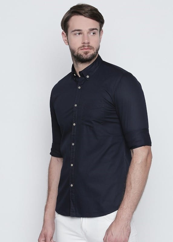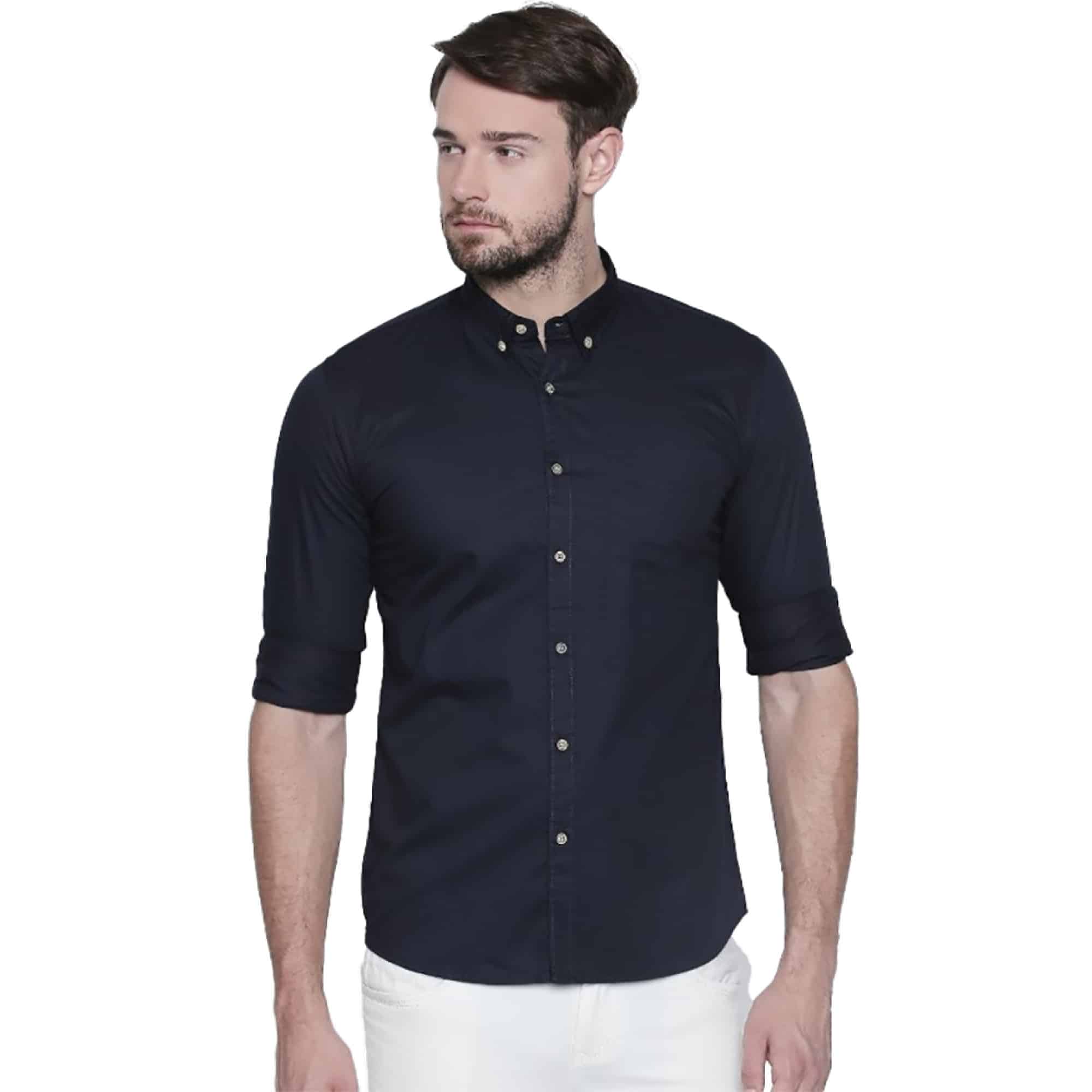 Stylish Navy Blue Cotton Shirt for Men – a masterclass in sophisticated casual wear that seamlessly marries comfort with contemporary flair. Elevate your style game with this versatile shirt designed for the modern man.