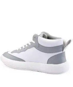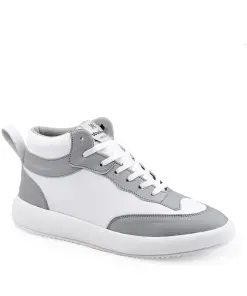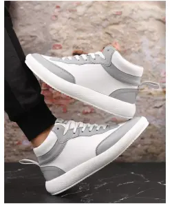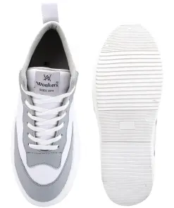 Men’s Grey & White Color Block Sneakers. Elevate your footwear collection with these sleek and versatile kicks, designed to effortlessly blend style and comfort.
