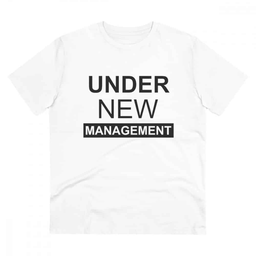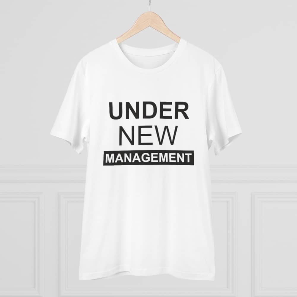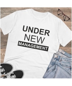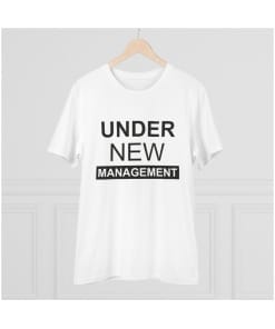 Crafted from premium PC cotton, this T-shirt ensures a soft and breathable feel against your skin, providing comfort throughout the day. The classic white hue serves as a versatile canvas for the playful “Under New Management” design print, adding a touch of humor and personality to your ensemble.