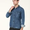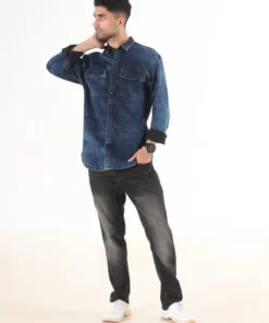 Midnight Tide Premium Washed Navy Denim Shirt for Everyday Wear