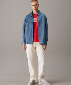The denim fabric’s breathable nature ensures comfort throughout the day, while its sturdy construction provides long-lasting wear. Its neutral tone makes it easy to pair with jeans, chinos, or casual trousers, offering multiple styling options for everyday wear.