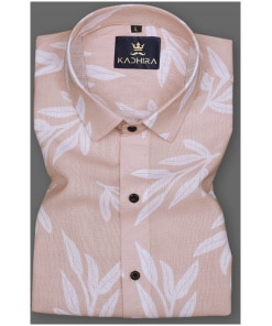 This shirt is a fusion of style and tropical bliss, making it the perfect choice for any festive occasion. The peachy tones evoke a sense of warmth and joy, while the botanical leaf print adds a touch of exotic flair, creating an ensemble that’s both captivating and comfortable.