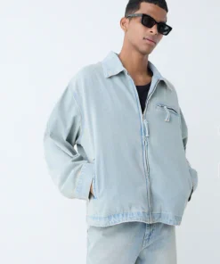 Overall, the Premium Men’s Light Blue Relaxed Fit Denim Jacket combines modern design with everyday practicality. Its comfortable fit, durable construction, and versatile style make it a dependable wardrobe essential for men who prefer timeless fashion with a relaxed, contemporary edge.