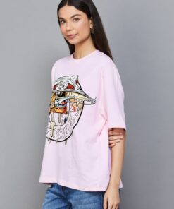 Ideal for women who value comfort without compromising on style, this relaxed fit T-shirt combines practicality with playful fashion. The graphic print adds a fun element to daily wear, making it a statement piece that brightens up any casual ensemble.