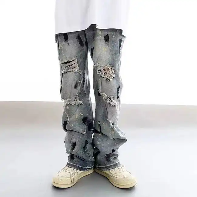 • Street Style Distressed Denim: Incorporate street style into your wardrobe with our fashion-forward ripped stacked jeans, providing a trendy and comfortable option.