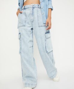 Functional cargo pockets add a practical and trendy element, offering convenient storage while enhancing the casual, utilitarian appeal of the jeans. Clean stitching, reinforced seams, and neatly finished hems contribute to their polished yet relaxed look.