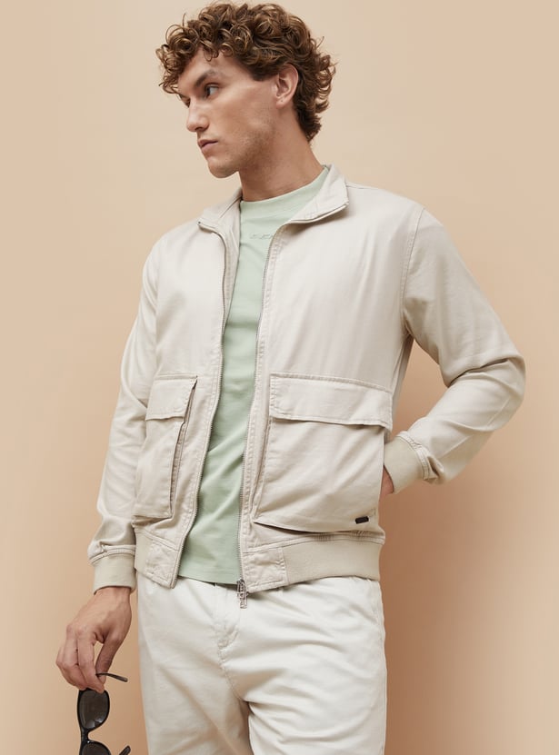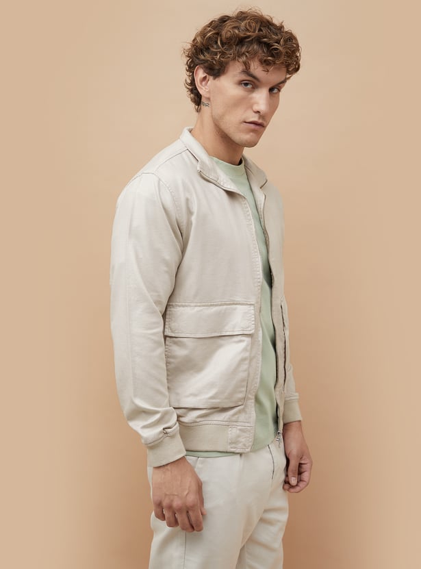 Stand Collar Textured Jacket for Men Modern Everyday Wear