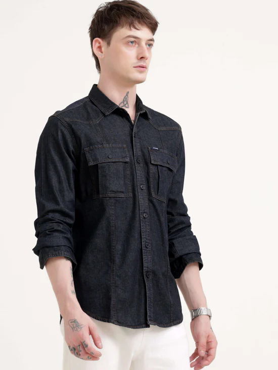 Overall, the Storm Carbon black denim shirt for men offers a perfect balance of style, comfort, and durability. Its classic design enhanced with a modern touch makes it a dependable and stylish choice for men seeking an everyday denim shirt with a refined edge.