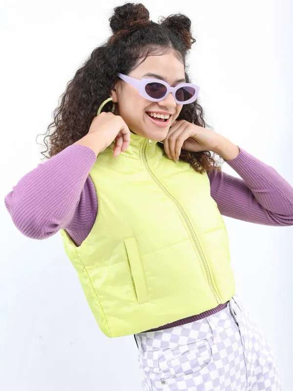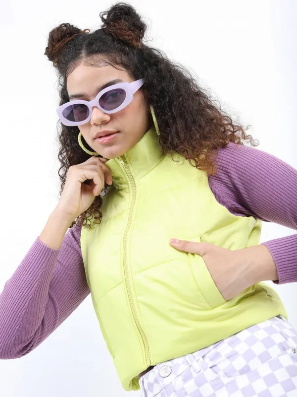Versatile and effortlessly stylish, this green puffer coat pairs perfectly with jeans, leggings, or trousers, making it suitable for casual outings, weekend adventures, or daily commutes. Its lightweight construction ensures you stay warm without feeling bulky, while the durable fabric withstands regular wear and tear. Functional side pockets allow you to keep your hands warm or carry small essentials conveniently.