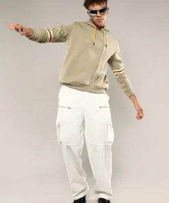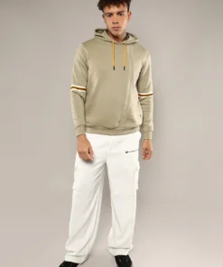 The contrast stripe detailing on the sleeves enhances the sporty appeal of the hoodie, giving it a contemporary edge that stands out from basic designs. This feature makes it easy to style with jeans, joggers, or shorts, creating an effortlessly trendy look for everyday wear.