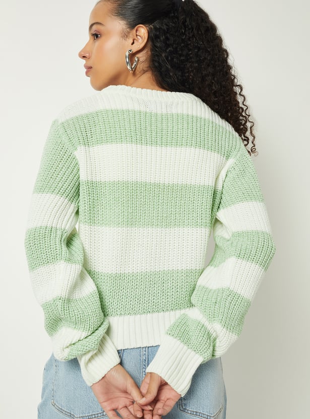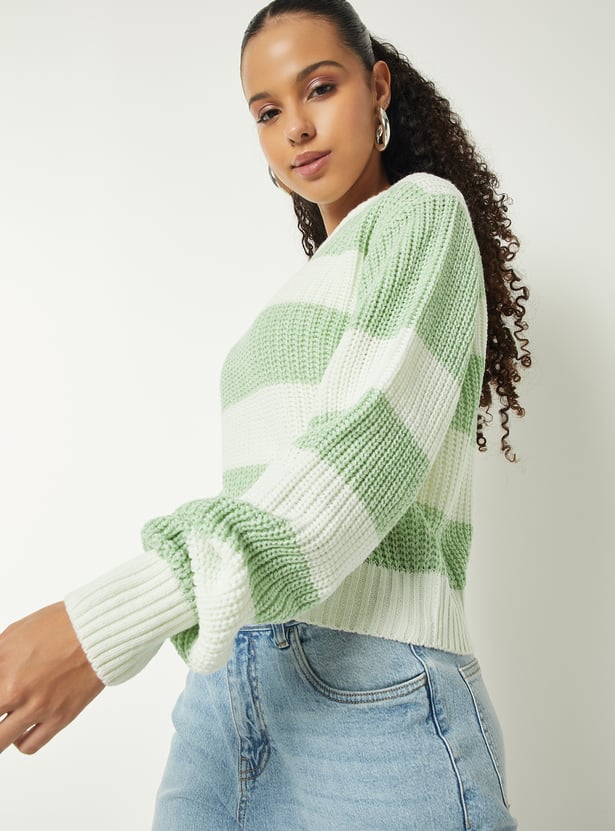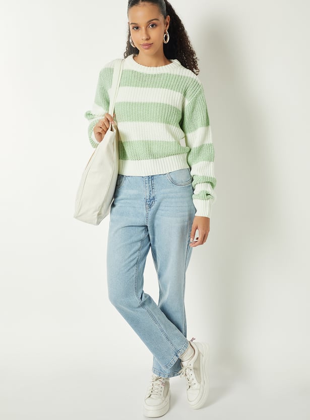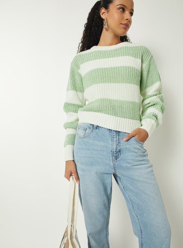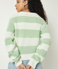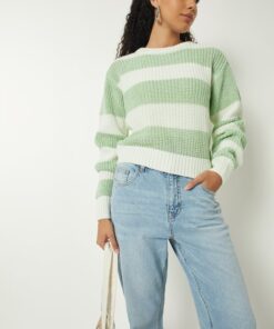 The standout feature of this jumper is its stylish striped pattern, which adds visual interest and personality to your outfit. Bold, contrasting stripes or subtle tonal variations make this piece versatile, allowing it to complement jeans, trousers, skirts, or leggings. A classic round neckline, long sleeves, and ribbed cuffs and hem provide structure and durability, ensuring the jumper retains its shape while delivering a polished finish.