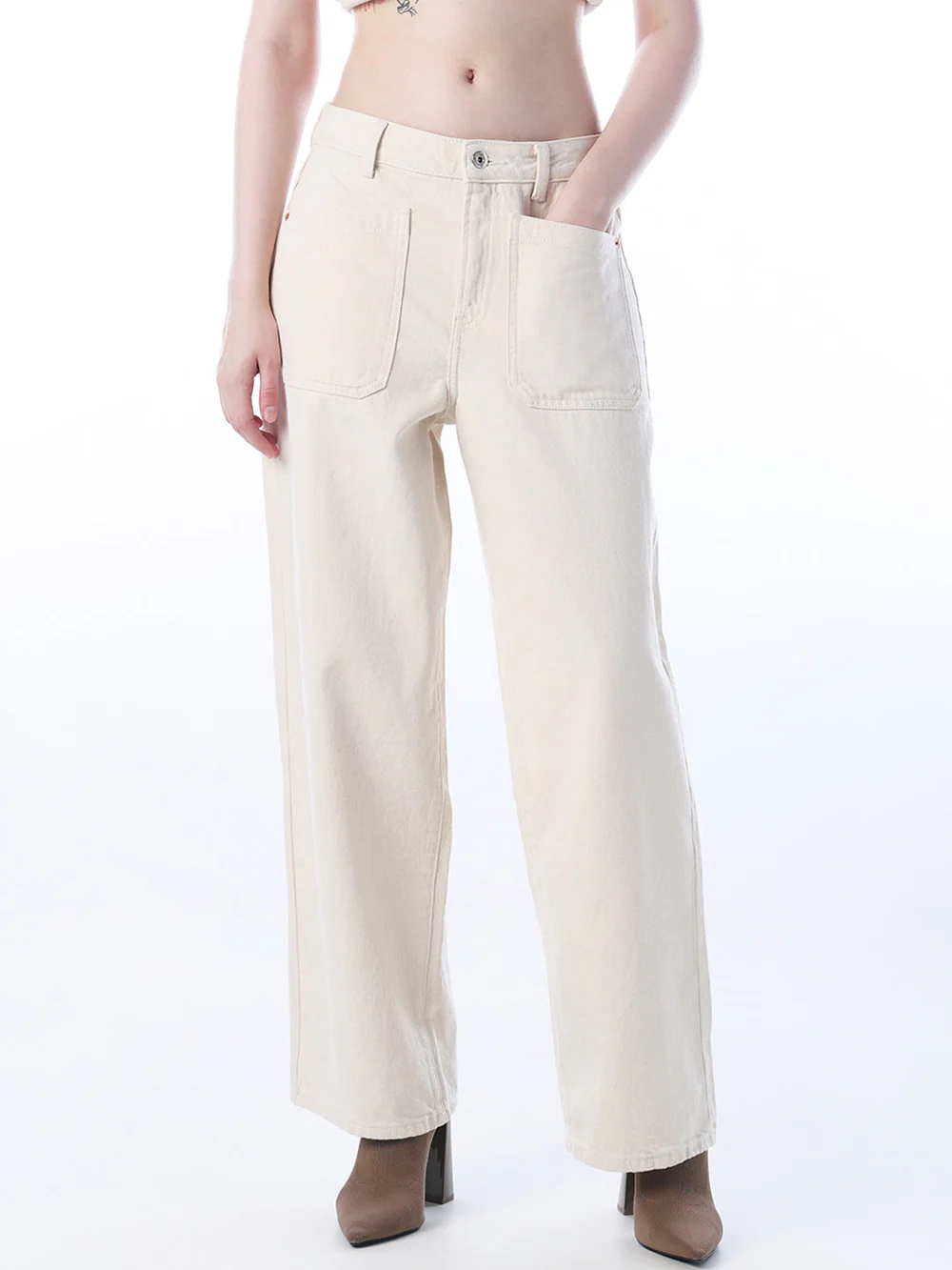 Trendy Ecru High-Rise Wide-Leg Denim Pants for Women, a perfect blend of contemporary style and effortless comfort. The soft ecru hue offers a fresh, versatile look that pairs seamlessly with a wide range of tops and accessories, while the high-rise design creates a flattering, elongating silhouette. Designed for women who value both fashion and functionality, these pants are ideal for casual outings, weekend adventures, or chic street-style ensembles.
