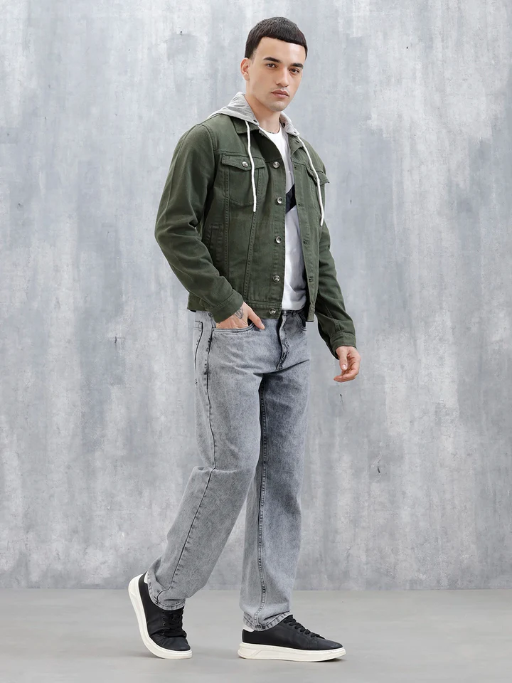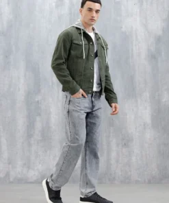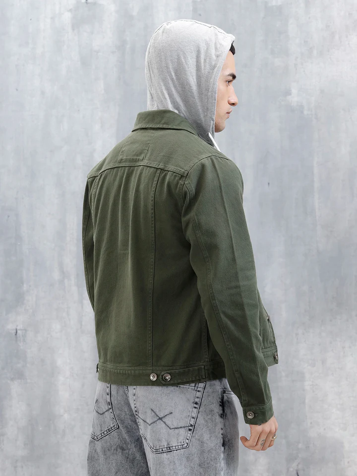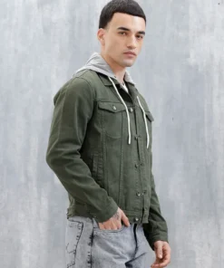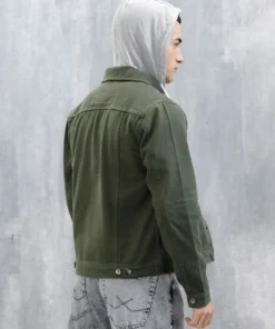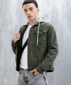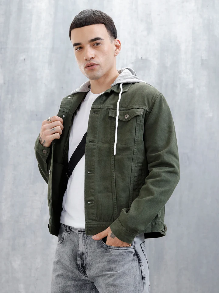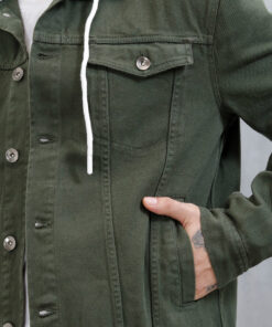 Trendy Men’s Olive Hooded Denim Jacket for Streetwear and Casual Outfits