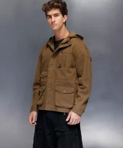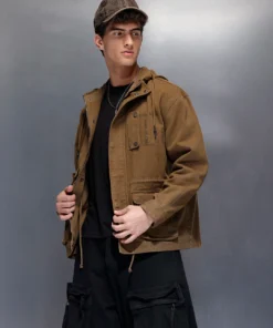 Overall, the Trendy Men’s Olive Utility Jacket combines durability, practicality, and contemporary fashion, making it a reliable and stylish addition to any casual wardrobe.