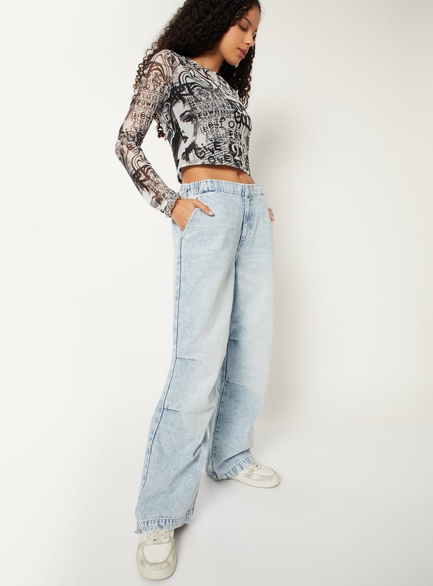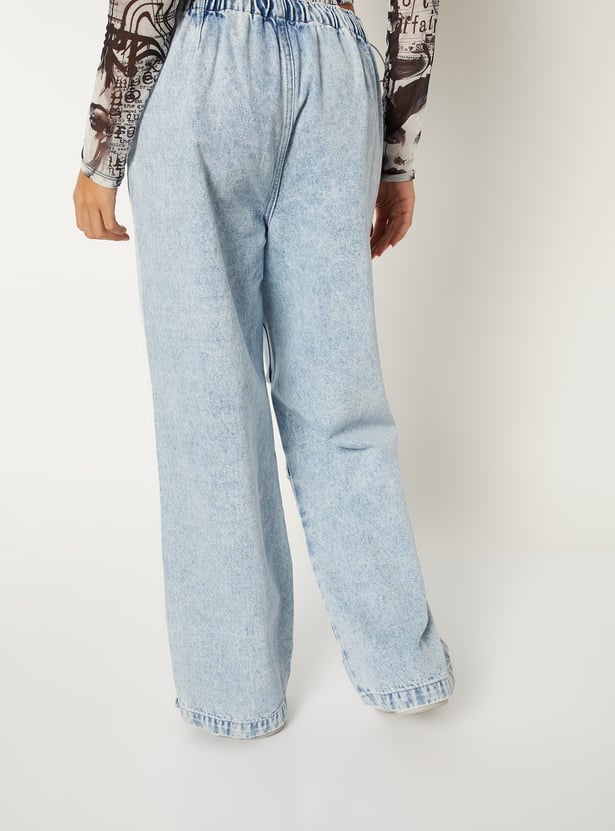Trendy Women Washed Wide Leg Denim Jeans Perfect for Casual Street Style