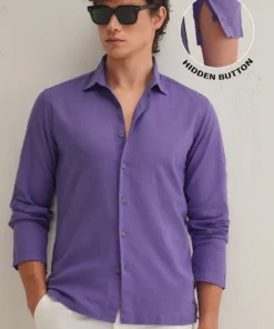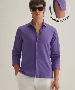 Perfect for men who value style, comfort, and versatility, this violet hidden placket cotton-linen shirt is a wardrobe essential. Its elegant color, premium fabric, and sleek design make it suitable for a wide range of occasions. Upgrade your everyday fashion with a shirt that combines effortless sophistication, modern style, and all-day comfort.