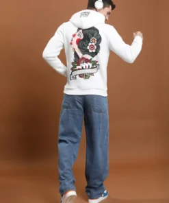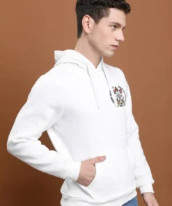 Overall, the White Hooded Pullover Sweatshirt combines practicality, comfort, and classic style, making it a must-have addition to any casual wardrobe.