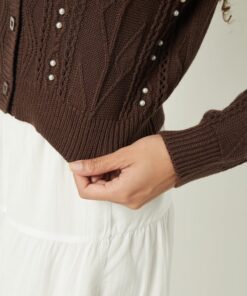Perfect for dressing up or down, this embellished cardigan pairs beautifully with jeans, trousers, skirts, or dresses, making it suitable for office wear, casual meet-ups, or evening outings. Its neutral tone or soft hues make it easy to coordinate with a variety of colors, while the cozy knit fabric ensures warmth without bulk. Layer it under jackets during colder months or wear it on its own to showcase its stylish detailing and elegant silhouette.