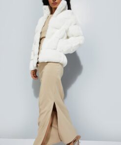 The jacket features a roomy, oversized design that allows for easy layering over sweaters, hoodies, or light jackets, providing both warmth and freedom of movement. The long sleeves and structured hem add a polished finish, while the soft faux fur texture enhances the jacket’s luxurious appeal. Its relaxed shape and generous padding create a cozy, enveloping feel, perfect for chilly weather or stylish winter outings.
