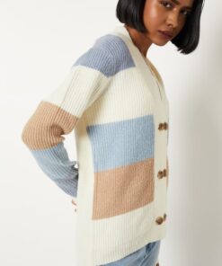 Women’s Knit Colourblock Cardigan. Crafted from soft, breathable knit fabric, this cardigan offers a comfortable, relaxed fit that makes it perfect for layering over casual outfits or office wear. Its modern colourblock design adds a stylish, contemporary twist, creating a visually striking look that effortlessly elevates any ensemble.