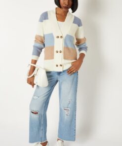 Versatile and easy to style, this knit colourblock cardigan pairs perfectly with jeans, leggings, or skirts for a casual-chic look, while also complementing more formal outfits for a professional setting. Whether you’re heading to work, running errands, or enjoying a weekend outing, this cardigan combines comfort, fashion, and functionality in one wardrobe essential. Effortlessly stylish and supremely comfortable, it’s a must-have piece for every modern woman’s closet.