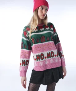 Women’s Christmas Printed Sweater, a cozy and cheerful knitwear essential designed to bring holiday spirit to your wardrobe. Crafted from soft, high-quality fabric, this sweater feels gentle against the skin while providing warmth and comfort for winter days, holiday gatherings, or casual festive outings. Its relaxed fit ensures ease of movement, making it perfect for layering over shirts or pairing with jeans and leggings for a fun, festive look.